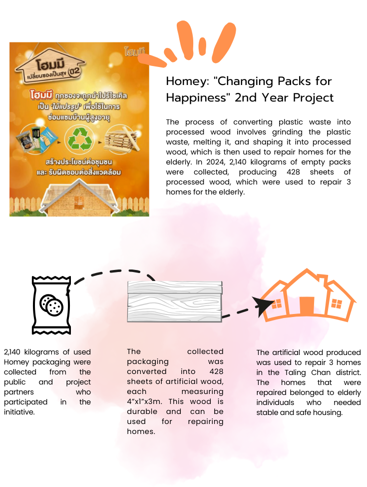 This project is an ongoing initiative that promotes the farming community through the Sustainable Agriculture Community Enterprise Network in Namo, which collaborates with the company to sell Fair Trade organic paddy rice at a price higher than the general market rate. The price premium earned from this difference will be directly reinvested to benefit the farmers or nearby communities. This process will be recorded and traceable in a transparent manner. In addition to supporting farmers, the project also helps boost the company’s economy by increasing sales of Fair Trade noodle products made from the organic paddy rice supplied by the network.
