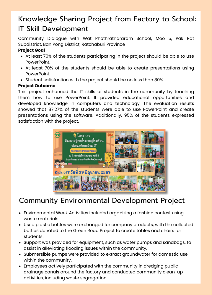 Knowledge Sharing Project from Factory to School: IT Skill Development