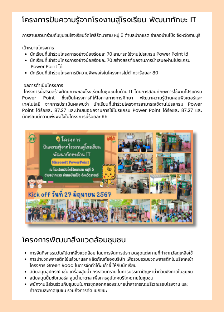 โครงการปันความรู้จากโรงงานสู่โรงเรียน