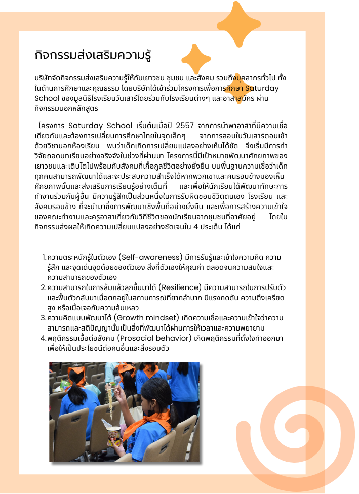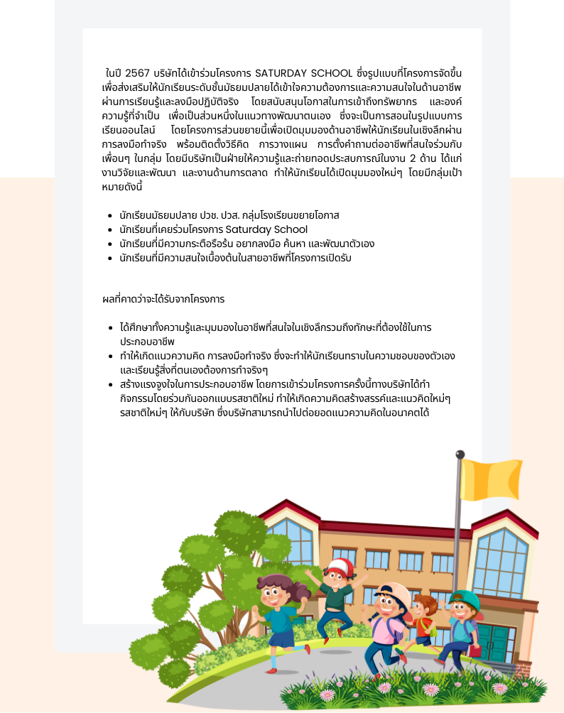 ปี 2567 บริษัทดำเนินงานด้านความรับผิดชอบต่อชุมชนและสังคม ดังนี้