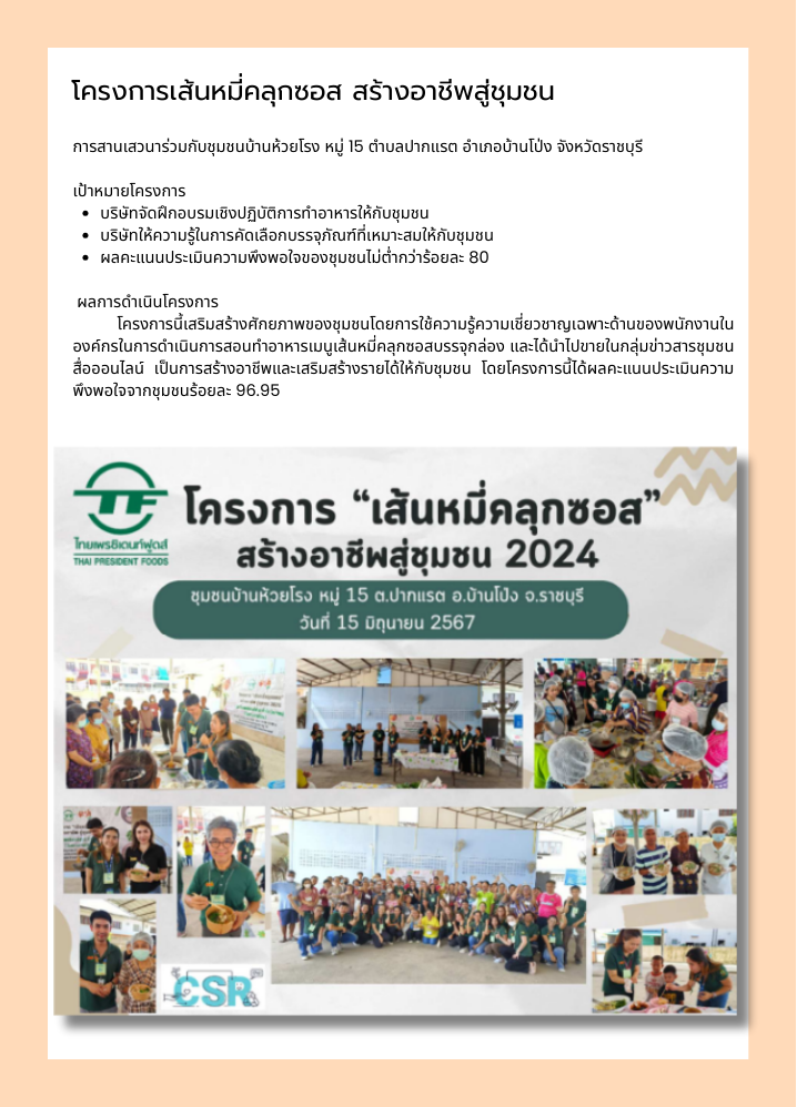 โครงการเส้นหมี่คลุกซอส สร้างอาชีพสู่ชุมชน